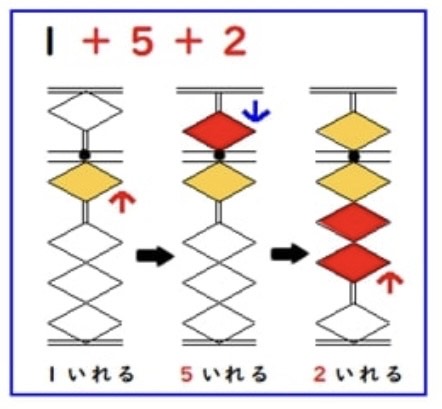 ②十の位に1玉を2個入れて、一の位に1玉を1個入れる。