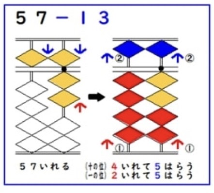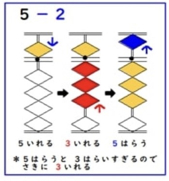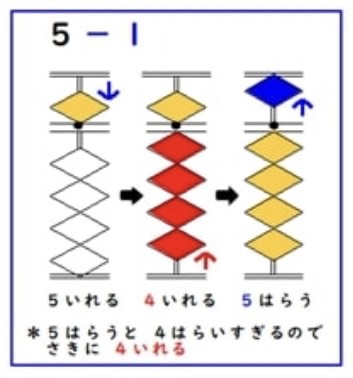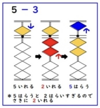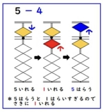 ★ひき算で、1玉がたりないときは、5玉をつかいます。